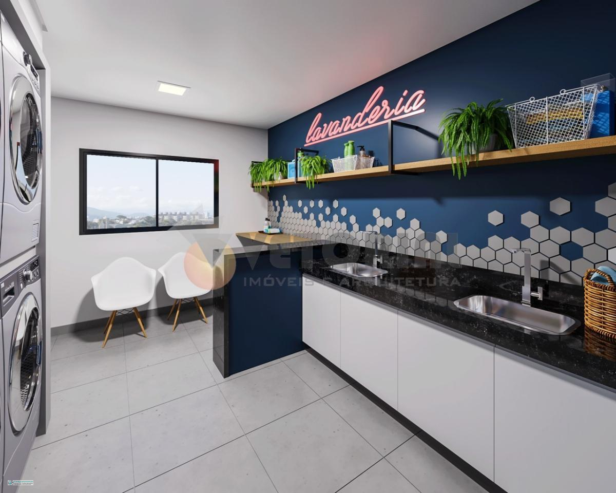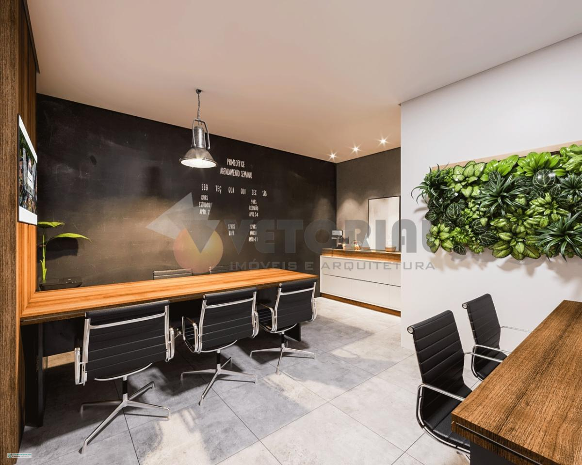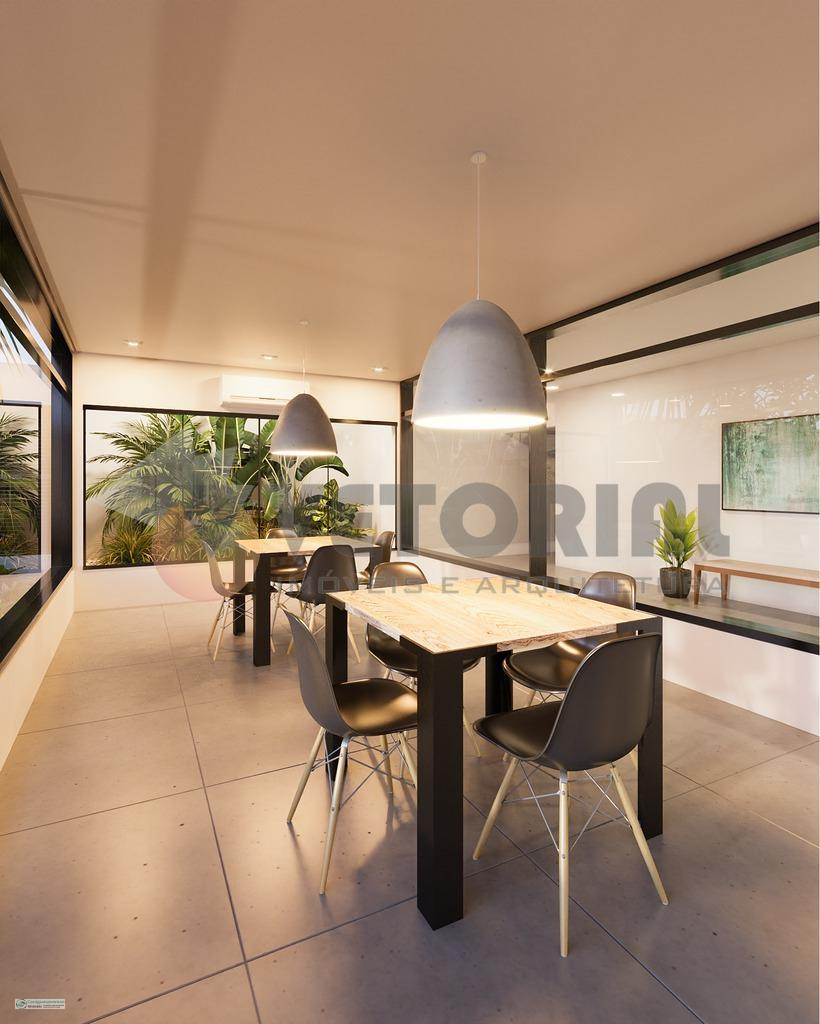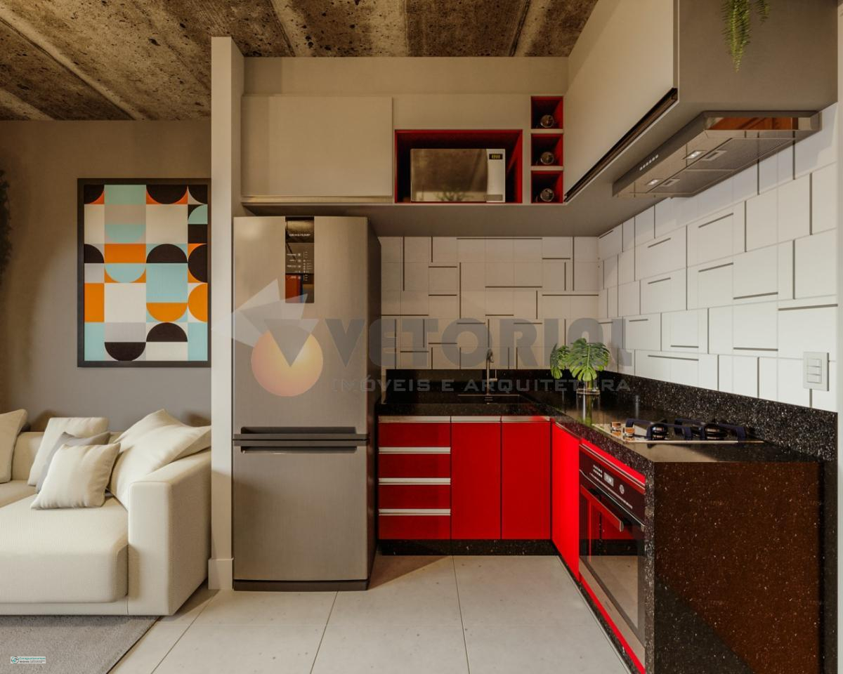 1 dormitório 48 m² sala de estar, dormitório, sacada, cozinha e banheiro.