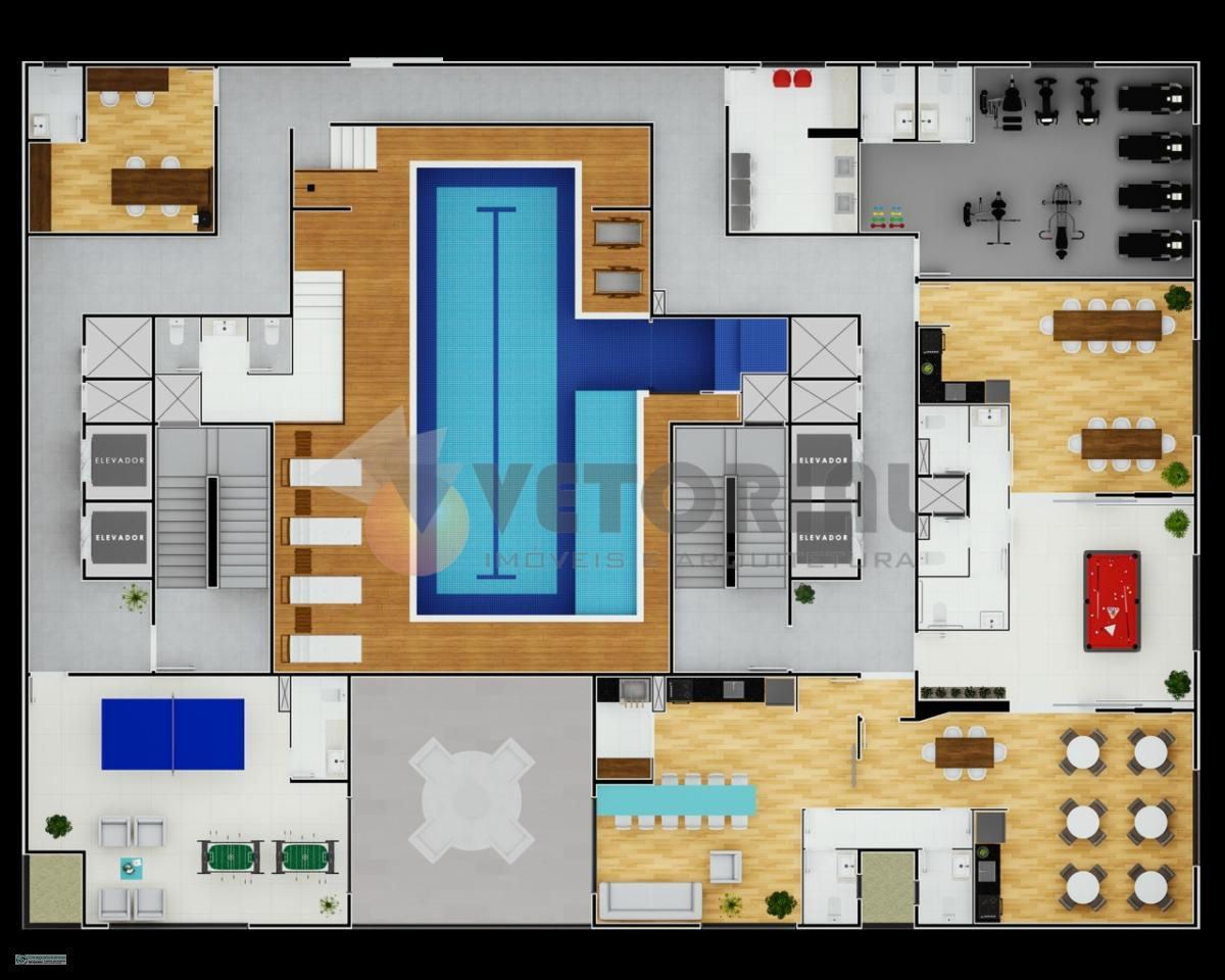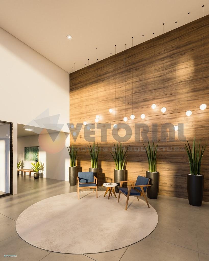 2 dormitórios 77 m² sala de estar, dormitórios, sacada, cozinha e banheiro.