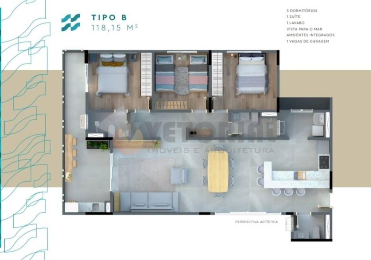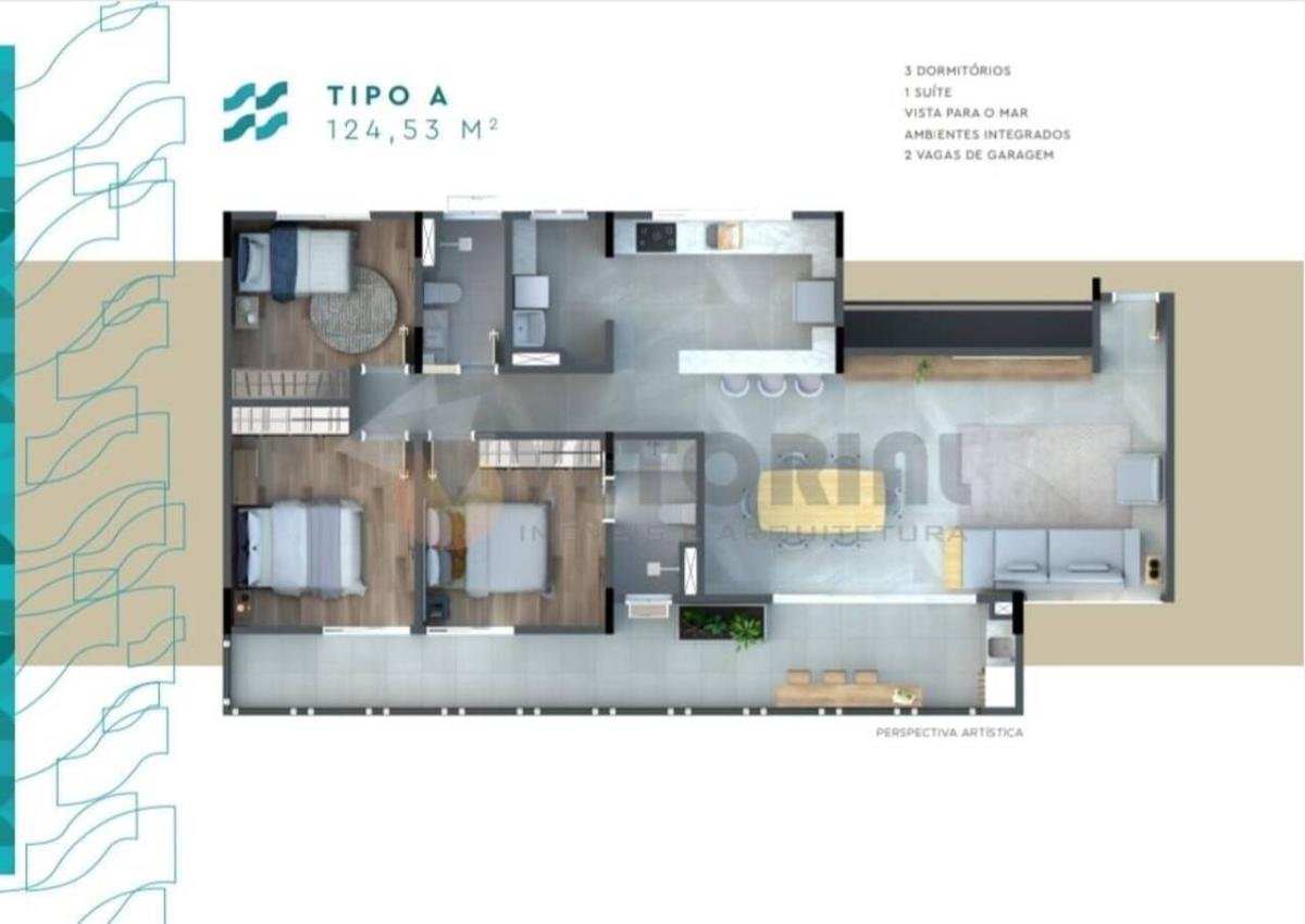 Condições Exclusivas nos Apartamentos tipo de 3 dormitórios com 118,15m², com vista mar (condições para poucas unidades, consulte o corretor).