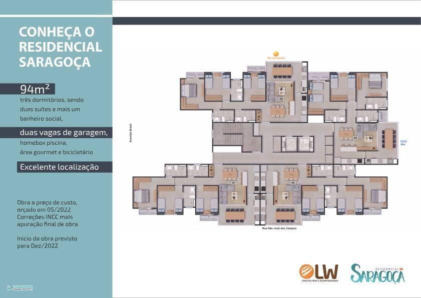 O Saragoça é um novo empreendimento a preço de custo, localizado no bairro Sumaré a 350m da praia, próximo de farmácias, supermercados, padarias, escolas, restaurantes e comércios diversos e do centro da cidade . Uma excelente oportunidade para investidores ou para adquirir seu imóvel ideal. Pensando em conforto, modernidade e sofisticação, o Saragoça terá 1 torre, 8 andares e 4 apartamentos por andar de 94m² e com VISTA MAR.